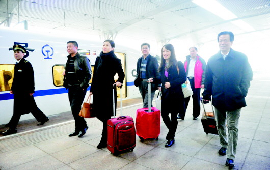 25日,来自烟台、威海的几名政协委员乘坐D6074次列车抵达济南报到。往年来济南开两会,烟台、威海的代表委员乘火车的话要提前一天出发,如今有了青荣城铁,三四个小时就到了。 本报记者 王媛 摄