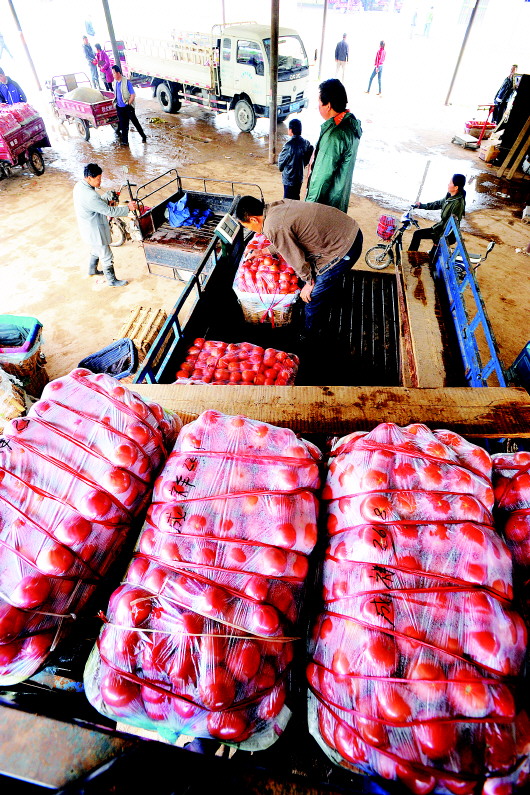 外地人到济阳收购西红柿等蔬菜。 本报记者 左庆 摄(资料片)