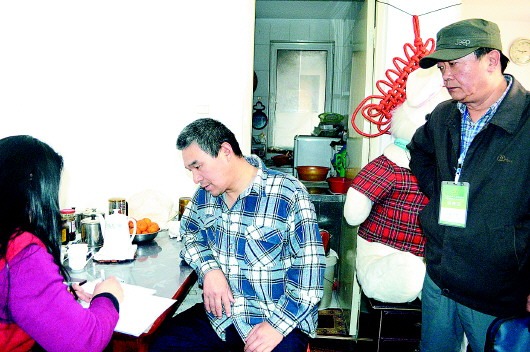 ▲后坡街社区工作人员入户摸底残疾人工作。
