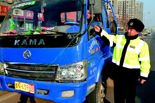 22日上午,徐垒和民警蔡林正在齐州路聊城路交叉路口处理一起交通事故,一辆鲁N号牌的蓝色中型货车引起了他们的注意。