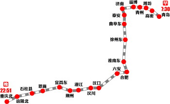 27日,记者从济南铁路局获悉,自3月20日起青岛至重庆北开行G318/5次高速动车组列车。从青岛至重庆,当天即可到达,全程用时15小时21分。据了解,G318/5次高铁7:30从青岛发车,全程共21个站点,分别为青岛、高密、潍坊、青州、淄博、济南、泰安、曲阜东、徐州东、淮南东、合肥、六安、汉口、汉川、潜江、荆州、宜昌东、恩施、石柱县、涪陵北,重庆北,抵达终点站的时间为当天22:51,全程共15小时21分,实现了朝发夕至。与现在先坐火车到成都再辗转到重庆的坐车方式相比,节省30个小时,耗时仅为以前的1/3。