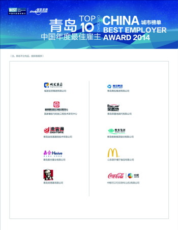 近日,“智联招聘·2014中国年度最佳雇主”青岛地区颁奖盛典,在青岛万达艾美酒店举行。最终揭晓了青岛地区10强榜单。其中,国橡中心、城发集团、维客集团、嘉合置业、山东中粮可口可乐、山东联升、青岛肯德基、迪信通、荣置地、青投集团(注:排名不分先后),成为青岛地区最佳雇主。青岛市大中专毕业生就业指导中心获得最佳人力资源支持机构奖项。