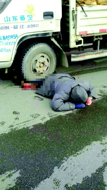 27日上午10点左右,市民刘先生路过东岳大街东盛佳苑小区附近时,看到一辆小货车停在东岳大街北侧机动车道,车辆旁边围着不少人,还有人躺在地上。“一名男子脸朝下趴在地上,两条腿被压在车轮下面,裤子已经被撕烂,右腿血肉模糊。”李先生说,小货车驾驶员也趴在地上,不断询问受伤男子的情况。