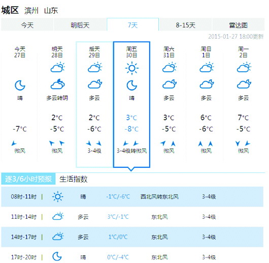 同时,该工作人员介绍,目前滨州气象部门主要发布未来1—7天的天气预报,重点关注未来1—3天的预报,“而网站上8—15天的预报是根据数值模拟自动生成的,只能作为参考。”