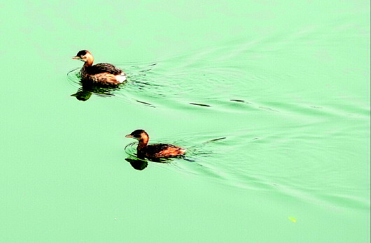 畅游在大明湖里的小。 本报记者 周青先 摄