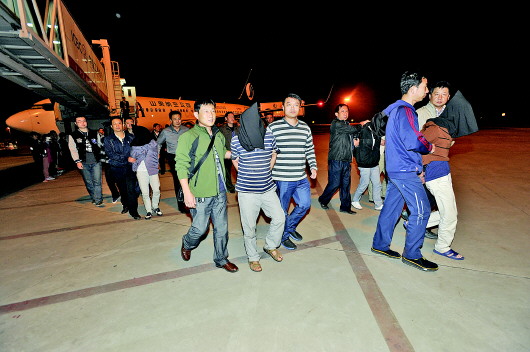 专案组民警押解犯罪嫌疑人。(警方供图)