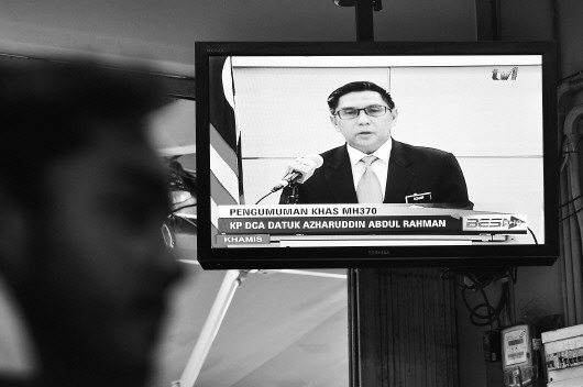 1月29日,在马来西亚吉隆坡,电视直播马来西亚民航局局长爱兹哈尔丁发表声明。