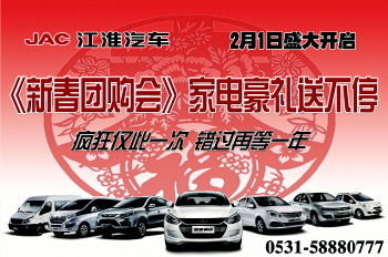 2015年,江淮汽车为回馈广大车主的喜爱特推出感恩惠千万活动,结合济南金天易江淮4S店给予客户最大的让利与优惠,2月1日济南金天易江淮汽车匡山店给予你新春的礼物和惊喜的购车优惠!
