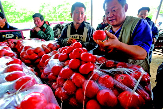 ◥外地游客来济阳采购西红柿。 本报记者 左庆 摄