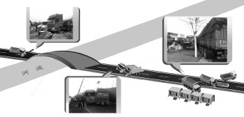 而在龙拱桥北侧约30米处,一辆河南牌照的拖挂货车车头扭转90度,车厢侧翻在路中央,拉载的30多吨瓷砖碎了一地。“看到前面有事故我就赶紧刹车,但在结冰的路面上急刹车很容易失控。”驾驶员宋先生说,由于刹车太急车辆突然向东侧倾斜,他急忙右打方向盘才避免车辆冲进路沟。