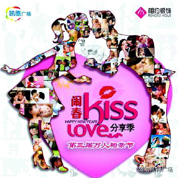 本报1月29日讯(记者 李晓东)2月14日,本报携手凯德广场举办KISS LOVE第三届万人相亲会。为单身男女牵线,打造一场浪漫的相亲盛会。眼看春节就快要到了,再想想过节时亲戚们无休止的催婚,单身男女们就快点来凯德广场给自己求个姻缘吧!