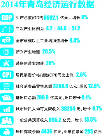 “虽然8%的增速跟往年相比是有所下滑,但含金量特别高,经济发展是慢了,但发展也更好了。”王东翔说,青岛市2014年GDP增速是8%,是近几年以来最低的一个速度。但8%的增速高于全国7.4%的增速,在同类城市当中处于居中的速度。15个副省级城市中排第9位,在计划单列市中排第3位。
