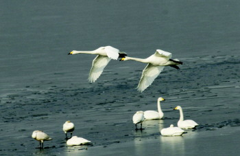 入冬后的一个普通日子里,在胶州少海湿地公园,一片芦苇中,十几只白天鹅正在嬉戏:时而在水中觅食,时而展翅高飞。据了解,这些天鹅来自西伯利亚,自2010年少海湿地公园尚未完全建成时,它们就来此过冬了。随着周边湿地划线保护,天鹅的生存条件越来越好,每年来少海湿地过冬的天鹅达到了上百只。此外,还有鹤鹬、海鸥等十余种候鸟。
