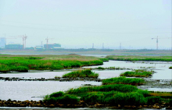 与湿地公园不同,城阳白沙河、墨水河汇入胶州湾的入海口处,则是比较“原始”的湿地面貌。2014年9月,沿白沙河自东向西前行,虽然沿途能观察到的水鸟数量不多,但大片大片的芦苇随风起伏,浩浩荡荡,让人印象深刻。