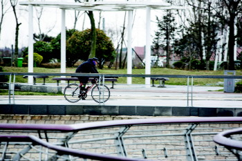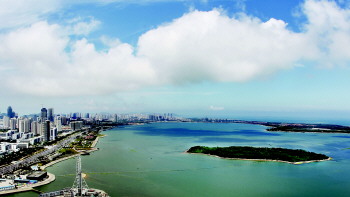 蓝天、白云、碧水、绿地,唐岛湾湿地公园美景如画。