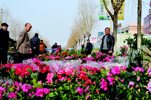 在2日的章丘明水大集上,询问花价的顾客很多,但由于花的价格偏高,买主不多,生意不如往年红火。