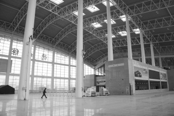 2月2日,在德州综合客运中心工作人员正忙碌着打扫卫生,收拾场内物品,由于设备安装调试工作尚未完成,原定于“春运”之前启用的综合客运中心可能要向后延期。 本报记者 马志勇 摄