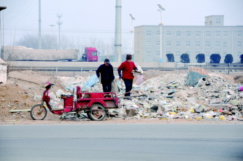还未建成的天衢东路下穿京台高速涵洞两端的道路几成建筑垃圾倾倒场,2月2日,有不少市民在成片的建筑垃圾中捡拾有利用价值的废品。 本报记者 马志勇 摄