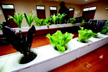 2日,合川路11号展出了一款无土栽培设备,没有泥土的花盆里“长”出了蔬菜和鲜花。据介绍,这是一款名为“空中花园”的电子组合花盆,花盆里无需泥土,只需放置的特定养料,植物就能自然生长。
