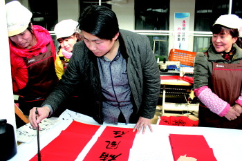 此次活动,九位硬笔书协会员共为当地村民书写了近100副春联,并赠送了一批字画,为当地群众营造了欢乐祥和的新春气氛。 本报记者 刘伟 摄影报道