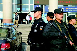 2日,特巡警持枪在车站巡逻。临近春运,特巡警加强对火车站、汽车站的巡逻,提升处理突发事件的应急能力。