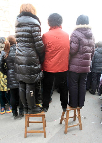 时间:2015年1月24日 自述:为了看到前面的演出,想尽办法也要看到,两个凳子站了三个人。 点评:为了看演出,也是蛮拼的。