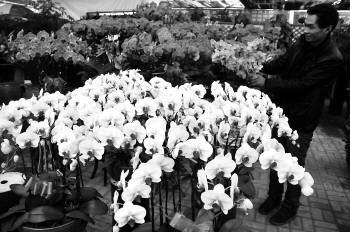 “这两年,花卉生意风险性越来越高。”冯贻德说,从去年开始,年节花卉拦腰降价,往年一盆300多元的蝴蝶兰,降到180元,每卖一盆花卉,利润压缩到十元左右。而这些年节花卉比较娇贵,一旦养护不好色泽不艳,销不出去就只能赔在手里。“订货后,这些花卉就压在自己手里,年节关口卖不出去,损失就大了。”冯贻德看着一片片的蝴蝶兰,眼神里满是焦虑。眼看年关临近,花卉市场的人流却不多,来往市民也多以询问、观赏为主,真正的买主并不多。