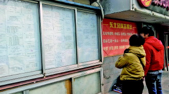 ◤临近年底,市区各招聘信息栏前,市民寥寥。 记者 冯琳 摄