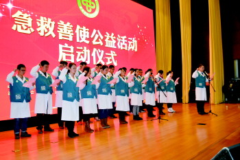 ◤急救善使”行动启动现场。 本报记者 樊伟宏 摄