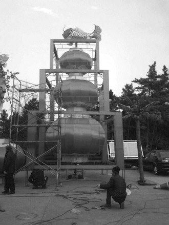 羊年日益临近,日前,枣庄人民公园工作人员以及花灯安装工人正在紧张进行安装工作,以烘托过节气氛。为丰富市民的春节文化生活,营造热烈、喜庆、祥和的节日气氛。 本报记者 赵艳虹 摄影报道