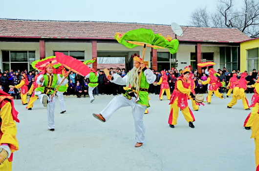 “过年很热闹,可年后一下子就闲下来了,我就想能否组织一个队伍跳秧歌。”郑路镇文化站退休老干部刘焕金告诉记者,五年前,在刘焕金和村民路来民的组织下,这支鼓子秧歌队成立了,最初全队只有十几人。“一有时间,我们十几人就找个空地操练。”秧歌跳得蒸蒸日上,后来又陆续吸纳了数十人。如今,这支由五十余人组成的鼓子秧歌队,不仅平日里在全村组织各类展演,每逢国庆节、中秋节、春节还到各街镇免费巡演。