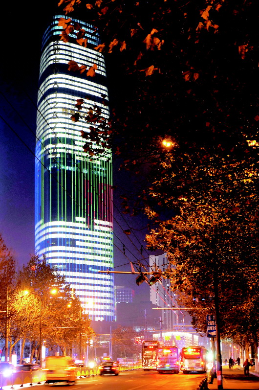 济南第一高楼亮灯,为济南的夜色增添了魅力。 本报记者 陈文进 摄