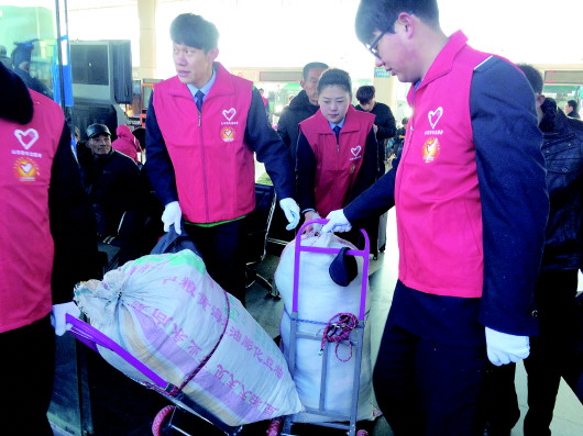 据了解,春运期间在全国多地汽车站、火车站都有志愿者服务活动,50多名身穿红马夹的志愿者,将在济南长途汽车总站南区、西客站进行志愿服务活动。