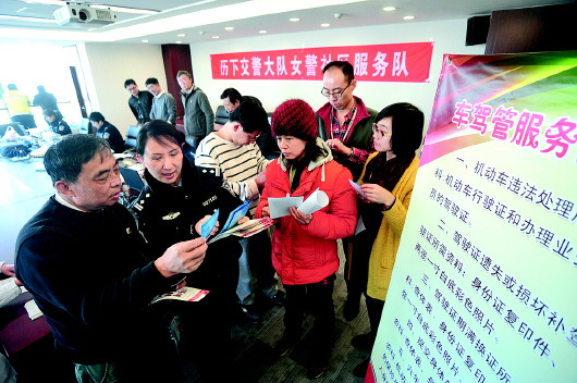 本报2月4日讯(记者 张泰来) 市民李先生最近一直为驾驶证换证的问题困扰,本来很简单的业务,就是抽不出时间去车管部门办理。4日,历下交警大队女警社区服务队来到了他所在的单位,本来需要花费半天去办的驾驶证换证业务,几分钟就完成了。