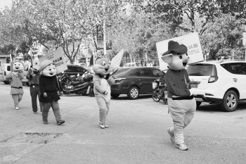 作品描述:这么多动物都举牌上街了,是要集体选美吗?