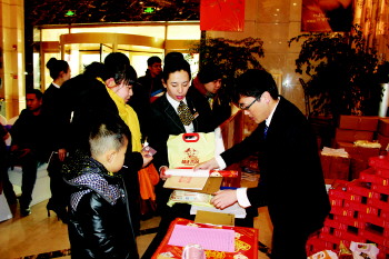 好地段人人要,好房子人人抢。由于开盘当天来访客户众多,开盘采取排号选房方式,使得开盘有序顺畅进行。为使各位客户及来宾高兴而来,满意而归,华嬉庄园活动现场内设置丰富的抽奖活动及微信摇一摇活动,iPhone6、体感游戏机、山地自行车、烟台苹果、新年大礼包等多重精美礼品送不停。