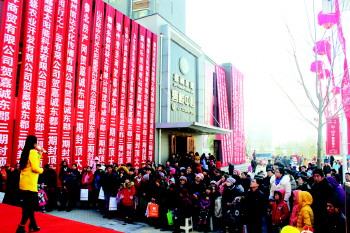 自入市来,嘉诚东郡项目的开发进展情况一直受到全市人民的关注和支持。在建设者们兢兢业业、坚持不懈的奋战下,嘉诚东郡三期工程在众人的翘首期待中荣耀封顶。繁忙但秩序井然的工地上,拔地而起的楼房披上了喜庆的盛装,长长的彩带庆祝着封顶的喜悦,也迎接着新年的到来。一早,嘉诚东郡售楼处签到处就人山人海,虽然天气寒冷,但依然挡不住德州人民的热情,售楼处门前锣鼓喧天,专业的舞狮表演更是给人们带来了一场视觉盛宴。