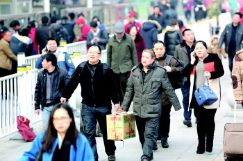 旅客们拎着大包小包踏上回家的路。 本报记者 张晓鹏 摄