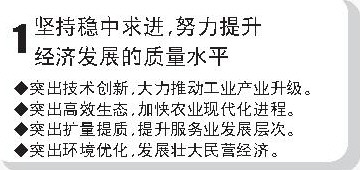 今年政府工作的总体要求是:深入贯彻落实党的十八大和十八届三中、四中全会精神,坚持稳中求进工作总基调,坚持以提高经济发展质量和效益为中心,坚持“六个更加注重”发展理念,努力在加快转调步伐、突破重点区域、统筹城乡发展、深化改革开放、保障改善民生、构建法治政府上实现新突破,全力加快小康社会建设步伐,把生态美丽幸福新滨州建设提升到一个新水平。