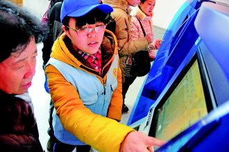 2月4日,为期40天的春运开始。当天上午,在威海北站购票厅和候车室内,几名哈工大(威海)学生志愿者帮旅客购票、验票。目前,很多人不会使用自动购票机而选择窗口排队购票,他们将利用寒假提供志愿服务。