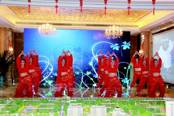 活动正式开始,首先,淄博绿城置业有限公司总经理黄继东发表了热情洋溢的致辞,向广场舞协会的会长与全体成员,及媒体朋友们表示了最诚挚的欢迎,向一直以来关注与支持百合花园的淄博各界人士表示了最衷心的感谢。紧接着晚会在绿城员工《相亲相爱一家人》的欢乐歌声中拉开了序幕。充满中国传统特色与情境的舞蹈《大红灯笼》、展示夕阳风采的表演走秀《最美不过夕阳红》、轻柔婉转、尽现柔美之姿的舞蹈《紫竹调》,充满异域风情的舞蹈《印度之花》,以及《唱支山歌给党听》、《爱要坦荡荡》等具有不同年代特色的动听歌声……精彩绝伦的歌舞表演、丰富纷呈的节目内容,让绿城人和广场舞人共同度过了一个难忘而美好的下午,更让新的一年在幸福与爱中开始前行。