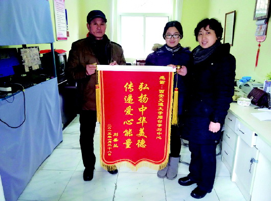 随后,刘建喜来到烟台市芝罘区福盛老年公寓,让工作人员帮忙将锦旗转交给西安交通大学烟台学习中心师生们,并转达刘盛兰老人的谢意。