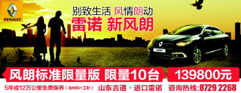 此次活动将推出专为全国雷诺十佳经销商定制的雷诺限量至尊版2015款新风朗,拥有头等舱般独一无二的驾驶享受!新风朗整车原装进口,是一款不失优雅具有法系浪漫情怀的车型。该车搭载了2.0L自然吸气发动机和CVT无极变速箱,全新的前脸设计,凸显法式浪漫情怀。全系标配ESP电子稳定系统和6安全气囊,安全性能领先同级车。同时很多智能配置的加入,让新风朗具备优雅浪漫外观的同时还具有惬意科技的驾乘体验。此时此刻,您还不打起精神?赶快行动吧!