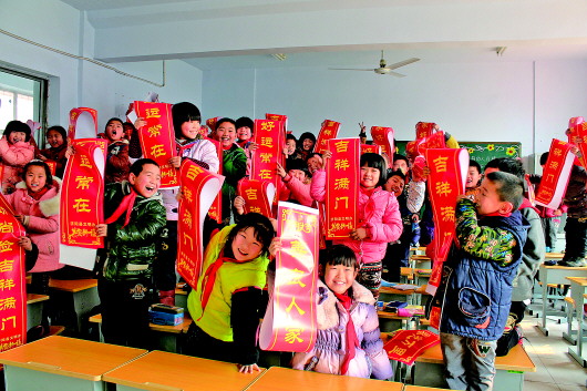 2日下午,济阳县文明办来到实验小学,为孩子们送上春联。春节到来之际,济阳县文明办印刷了10万副文明春联,并进行免费发放。