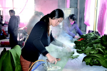 ◥淘宝店员工正忙着对尾单加工制作。 本报记者 董梦婕 摄