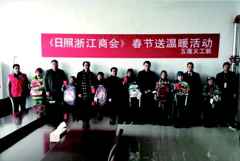 1月29日,日照浙江商会携手五莲义工联合会一起对五莲的特困学生和特困空巢老人进行了走访慰问。商会资助10个贫困家庭学生每人一个书包等文具,还有600元钱,资助8位老人每人一床高级羽绒被,500元钱。据悉,1月18日晚,日照市浙江商会年会在日照浙商大酒店圆满召开。会长郑岩娒代表商会向五莲义工联合会捐款10000元,用于走访贫困老人和贫困儿童。 本报记者 李玉涛 通讯员 侯小凤 摄影报道