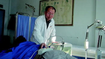 5日上午10点,记者在东港区人民医院针灸推拿科见到了杜良生,他正在给病人做着按摩,近两个小时时间里他一刻也没闲着。