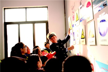 刘汶杰为孩子们讲解交通安全知识。