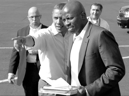 他俩还经常在一起打篮球。竞选期间,在一场对阵新罕布什尔州消防员的比赛中,奥巴马靠近勒夫,告诉他要“放点水”。“雷吉,我们想赢得胜利。但是我们也想赢得他们的支持。”