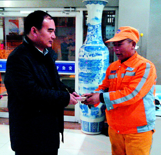 保洁员姚明成师傅将捡到的钱原封不动地还给失主。